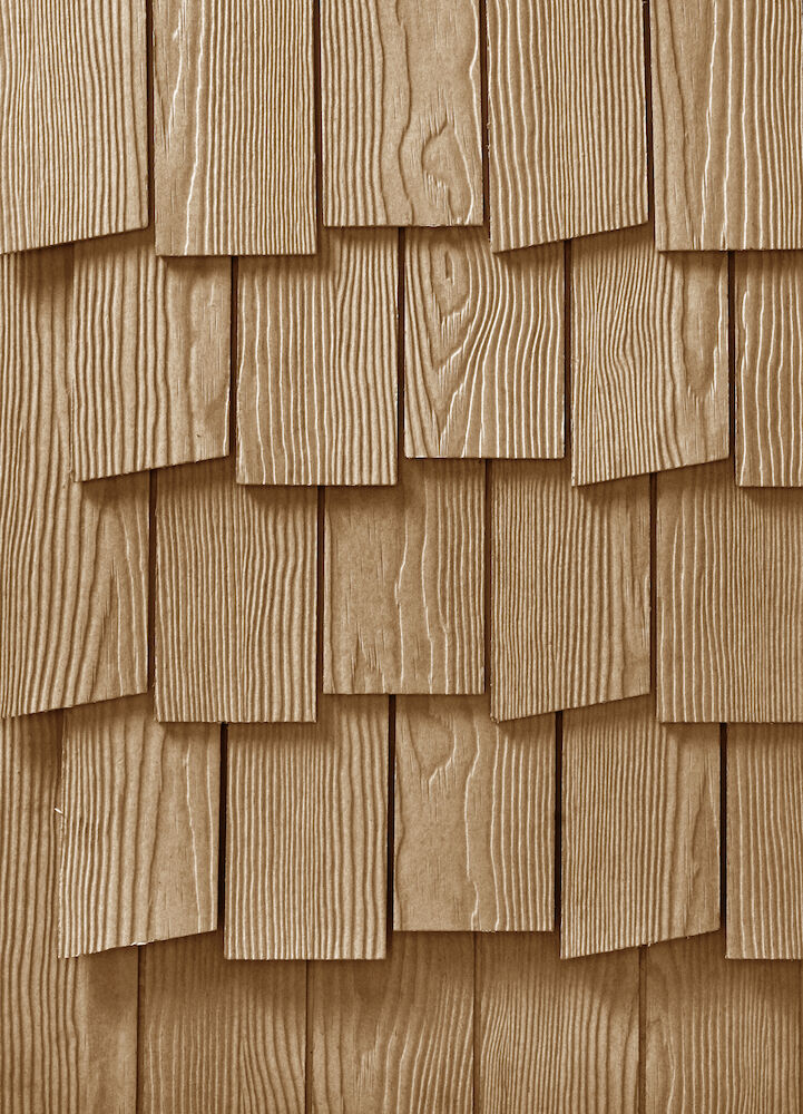 Tejuela de revestimiento de muro con textura de madera y terminación endentada, con diferentes colores y diseños. Se aplica en todo tipo de muros sobre una estructura en forma tinglada.