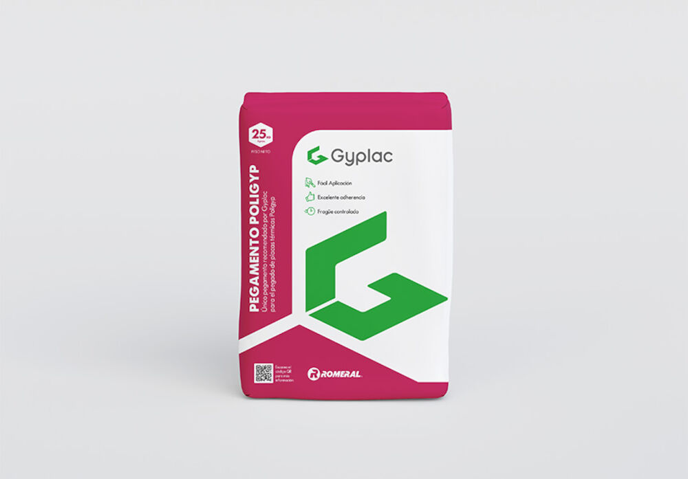Único pegamento recomendado por Gyplac para el revestimiento térmico del sistema Poligyp. Este pegamento es un producto especialmente formulado en base a yesos y aditivos retenedores de humedad, pegamento y fluidificantes para lograr un mayor poder de adherencia en los sustratos. Está disponible en sacos de 25 kg.